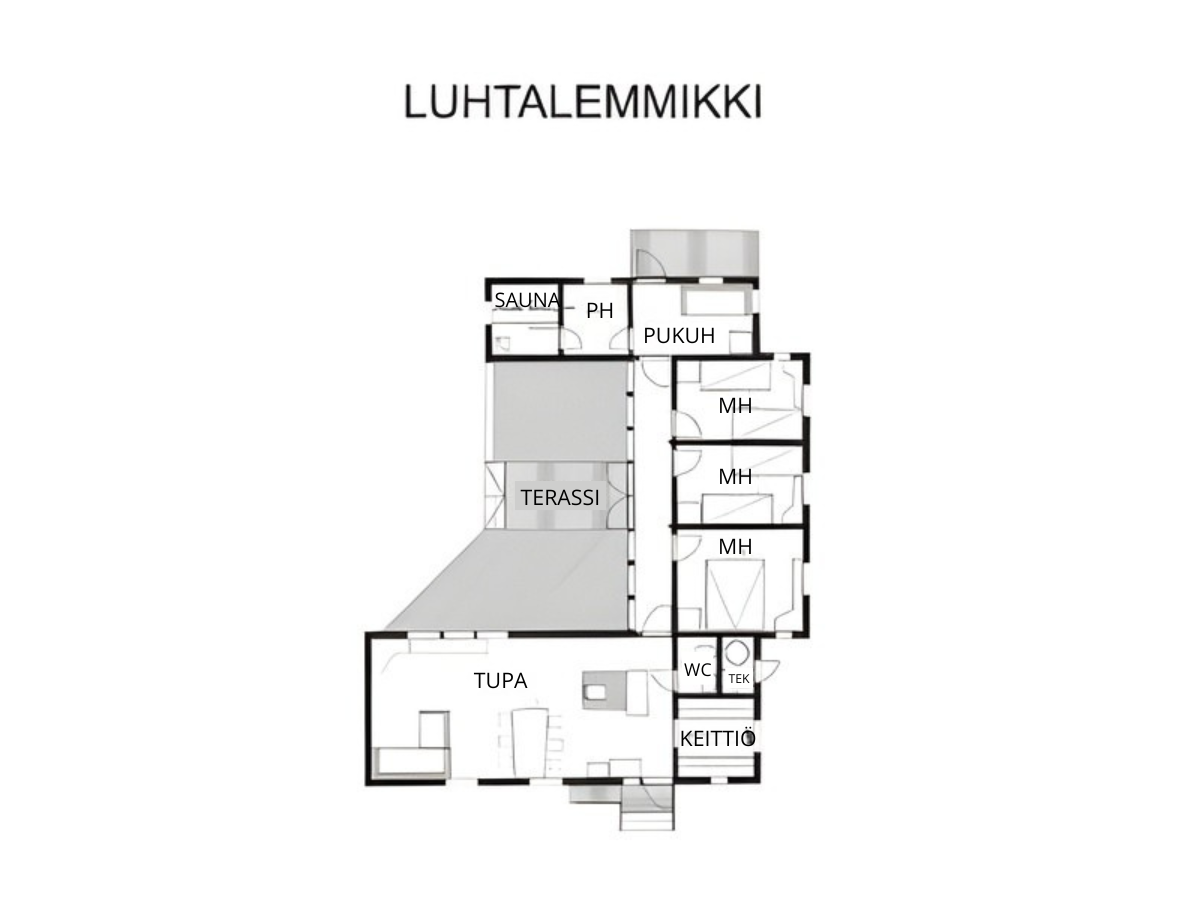 Luhtalemmikissä on kolme makuuhuonetta, avara oleskelutila, keittiö sekä sauna- ja pesutilat. Nukkumapaikkoja on 6–8 hengelle, ja kokonaisuus sopii hyvin viikkovuokraukseen esimerkiksi perhelomaa tai pidempää rauhallista irtiottoa varten.